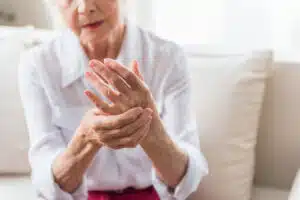 Elderly female is expressing pain